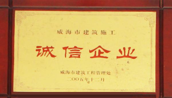 公司連續(xù)八年榮獲威海市“誠(chéng)信開(kāi)發(fā)企業(yè)”、“建筑施工誠(chéng)信企業(yè)”,連續(xù)九年被評(píng)為威海市級(jí)“守合同重信用企業(yè)”,多次被評(píng)為威海市“市級(jí)文明單位”、“質(zhì)量管理先進(jìn)企業(yè)”、 “安全管理先進(jìn)企業(yè)”,乳山市“優(yōu)秀企業(yè)”、“先進(jìn)民營(yíng)企業(yè)”、“納稅明星企業(yè)”,在社會(huì)上逐步樹立了誠(chéng)信、穩(wěn)健的企業(yè)形象。